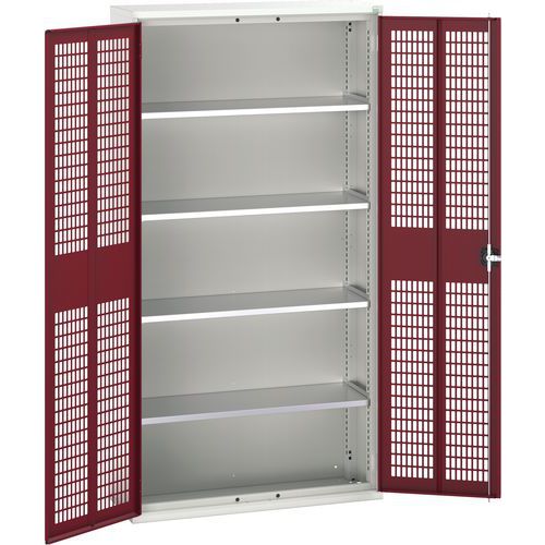 Dílenská skříň policová Bott Verso, drátěné dveře, 4 police, 200 x 105 x 35 cm, šedá-červená