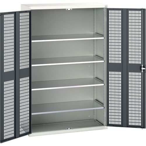 Dílenská skříň policová Bott Verso, drátěné dveře, 4 police, 200 x 130 x 55 cm, šedá-antracit