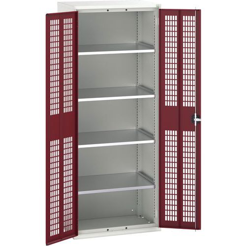 Dílenská skříň policová Bott Verso, drátěné dveře, 4 police, 200 x 80 x 55 cm, šedá-červená