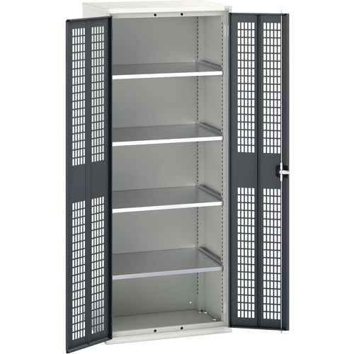 Dílenská skříň policová Bott Verso, drátěné dveře, 4 police, 200 x 80 x 55 cm, šedá-antracit