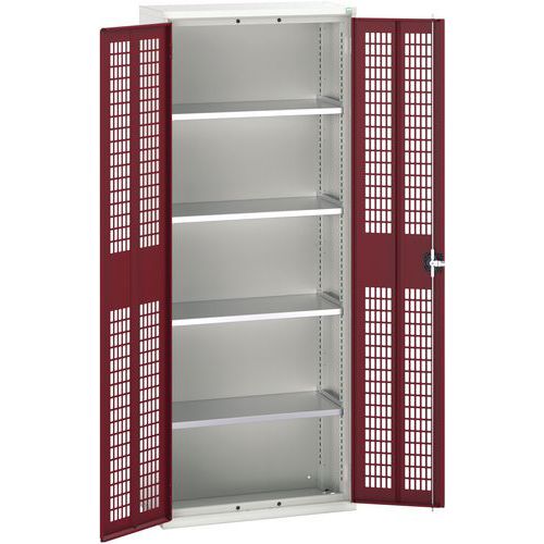 Dílenská skříň policová Bott Verso, drátěné dveře, 4 police, 200 x 80 x 35 cm, šedá-červená