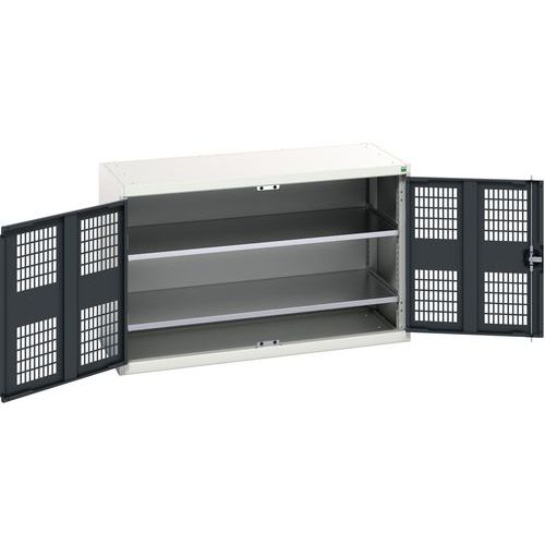 Dílenská skříň policová Bott Verso, drátěné dveře, 2 police, 80 x 130 x 55 cm, šedá-antracit