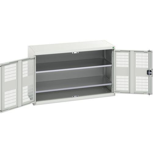 Dílenská skříň policová Bott Verso, drátěné dveře, 2 police, 80 x 130 x 55 cm, šedá-šedá