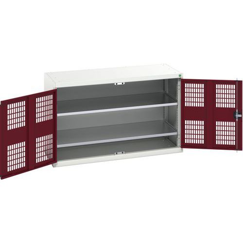 Dílenská skříň policová Bott Verso, drátěné dveře, 2 police, 80 x 130 x 55 cm, šedá-červená