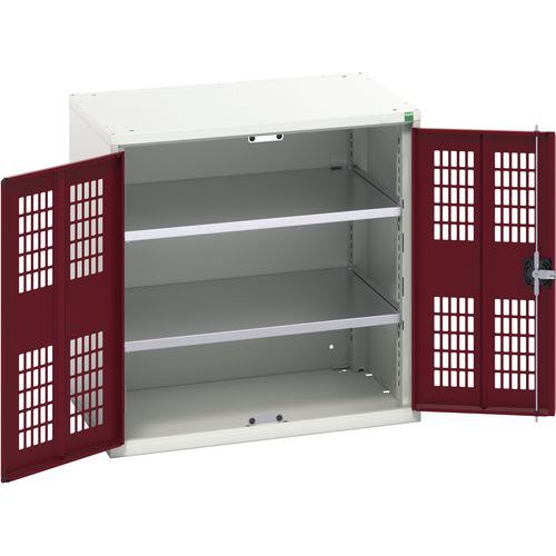 Dílenská skříň policová Bott Verso, drátěné dveře, 80 x 80 x 55 cm, 2 police, šedá-červená