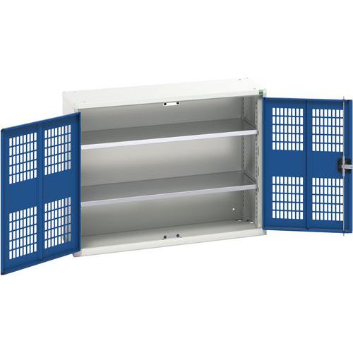 Dílenská skříň policová Bott Verso, drátěné dveře, 80 x 105 x 35 cm, 2 police, šedá-modrá