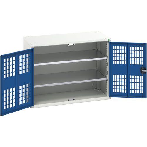 Dílenská skříň policová Bott Verso, drátěné dveře, 80 x 105 x 55 cm, 2 police, šedá-modrá