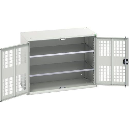 Dílenská skříň policová Bott Verso, drátěné dveře, 80 x 105 x 55 cm, 2 police, šedá-šedá