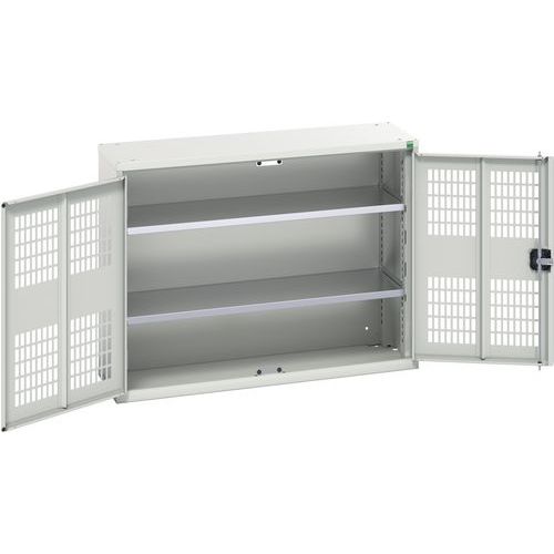 Dílenská skříň policová Bott Verso, drátěné dveře, 80 x 105 x 35 cm, 2 police, šedá-šedá