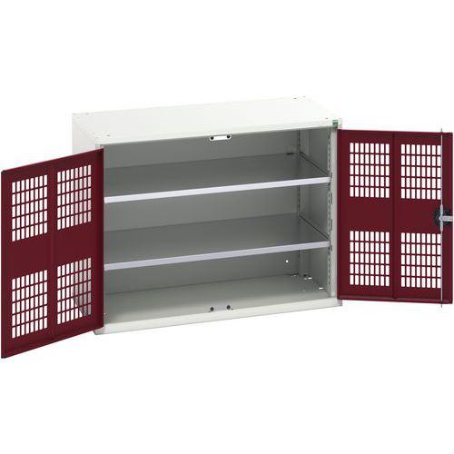 Dílenská skříň policová Bott Verso, drátěné dveře, 80 x 105 x 55 cm, 2 police, šedá-červená