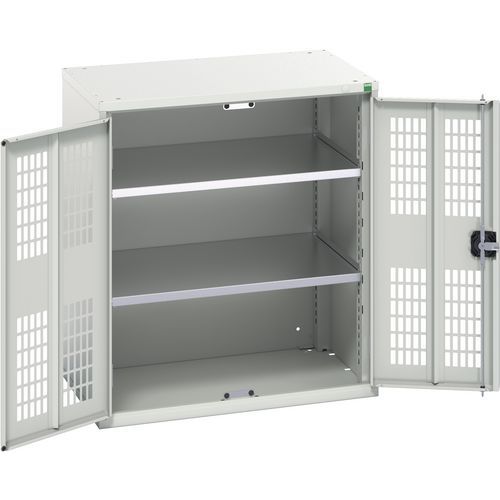 Dílenská skříň policová Bott Verso, drátěné dveře, 90 x 80 x 55 cm, 2 police, šedá-šedá