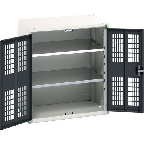 Dílenská skříň policová Bott Verso, drátěné dveře, 90 x 80 x 55 cm, 2 police, šedá-antracit