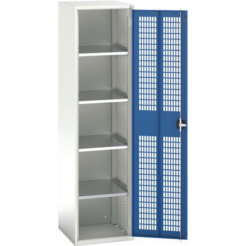 Dílenská skříň policová Bott Verso, drátěné dveře, 200 x 52,5 x 55 cm, 4 police, šedá-modrá Dílenská skříň policová Bott Verso, drátěné dveře, 200 x 52,5 x 55 cm, 4 police, šedá-modrá
