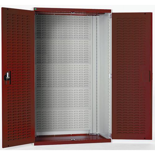 Dílenské skříně s perfo panely pro držáky na boxy/boxy, 200 x 105 x 52,5 cm, šedá-červená