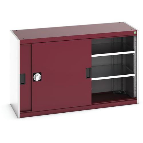 Dílenská skříň s posuvnými dveřmi, 80 x 130 x 52,5 cm, 2 police, šedá-červená