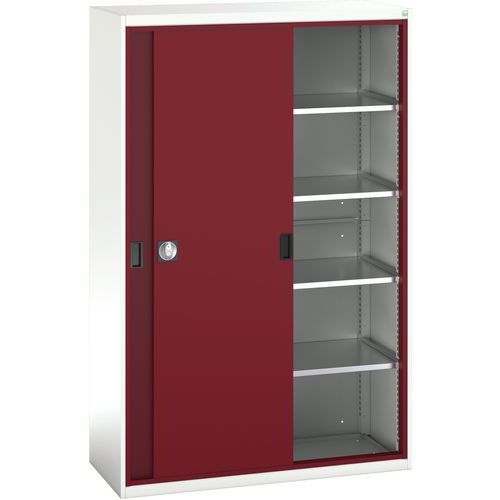 Dílenská skříň s posuvnými dveřmi, 200 x 130 x 55 cm, 4 police, šedá-červená