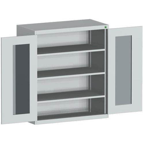 Dílenská skříň s průhlednými dveřmi Bott Cubio, 120 x 105 x 52,5 cm, 3 police, šedá-šedá