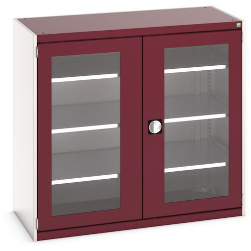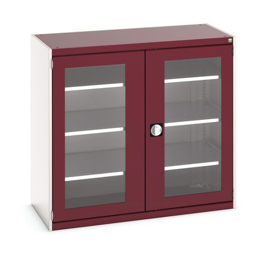 Dílenská skříň s průhlednými dveřmi Bott Cubio, 120 x 130 x 65 cm, 3 police, šedá-červená
