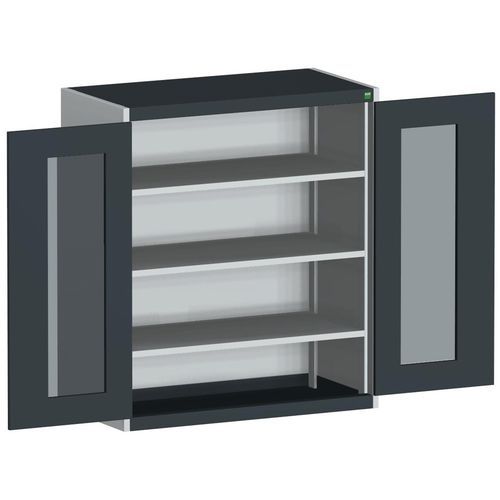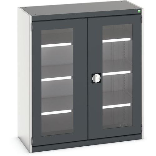Dílenská skříň s průhlednými dveřmi Bott Cubio, 120 x 105 x 52,5 cm, 3 police, šedá-antracit