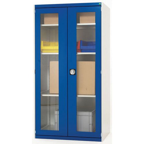 Dílenská skříň s průhlednými dveřmi Bott Cubio, 160 x 105 x 65 cm, 3 police, šedá-modrá