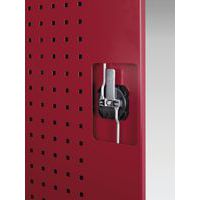 - Kovové dílenské skříně s průhlednými plexi dveřmi pro snadnou kontrolu obsahu.