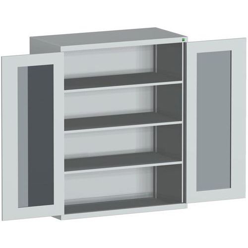 Dílenská skříň s průhlednými dveřmi Bott Cubio, 160 x 130 x 65 cm, 3 police, šedá-šedá