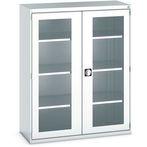Dílenská skříň s průhlednými dveřmi Bott Cubio, 160 x 130 x 52,5 cm, 3 police, šedá-šedá