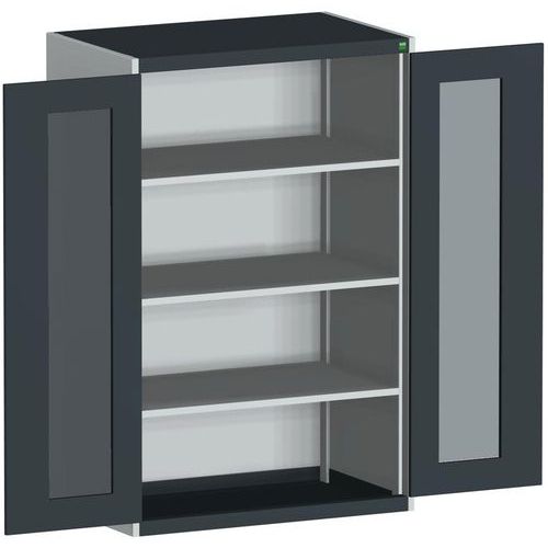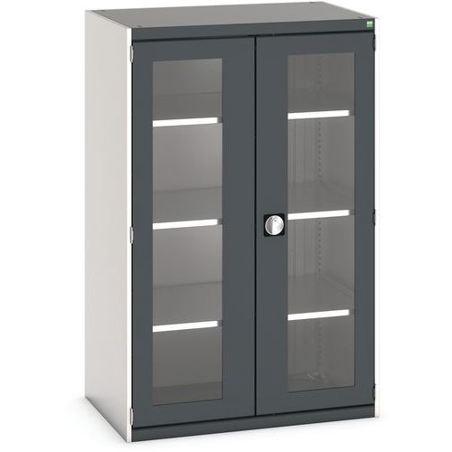 Dílenská skříň s průhlednými dveřmi Bott Cubio, 160 x 105 x 65 cm, 3 police, šedá-antracit