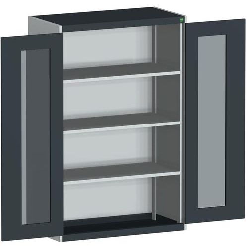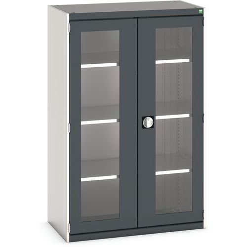 Dílenská skříň s průhlednými dveřmi Bott Cubio, 160 x 105 x 52,5 cm, 3 police, šedá-antracit