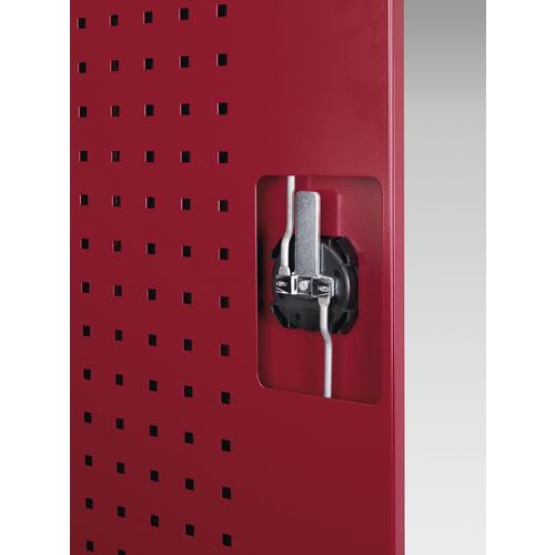 - Kovové dílenské skříně s průhlednými plexi dveřmi pro snadnou kontrolu obsahu.