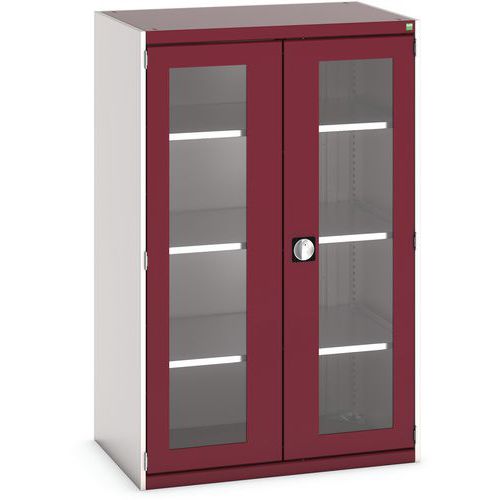 Dílenská skříň s průhlednými dveřmi Bott Cubio, 160 x 105 x 65 cm, 3 police, šedá-červená