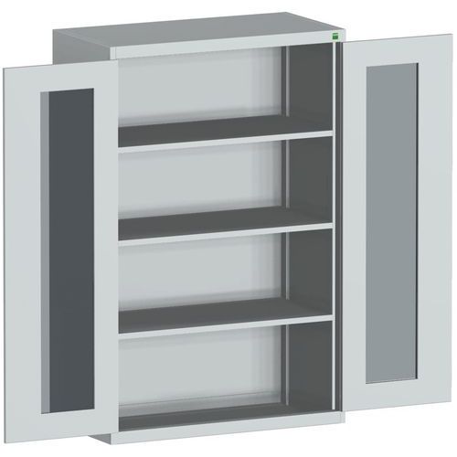 Dílenská skříň s průhlednými dveřmi Bott Cubio, 160 x 105 x 52,5 cm, 3 police, šedá-šedá