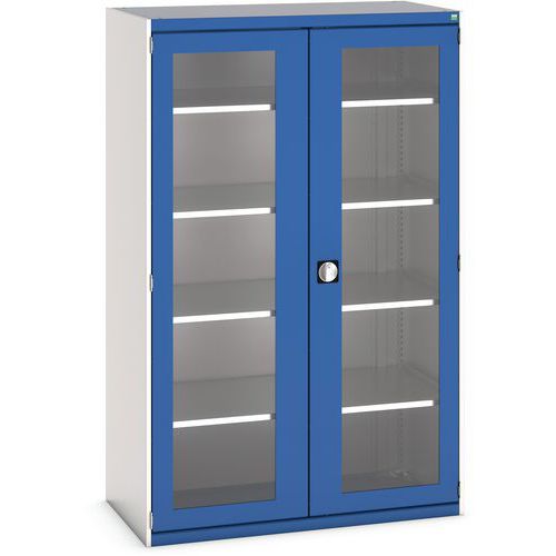 Dílenská skříň s průhlednými dveřmi Bott Cubio, 200 x 130 x 65 cm, 4 police, šedá-modrá