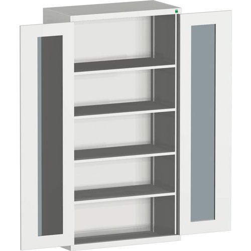Dílenská skříň s průhlednými dveřmi Bott Cubio, 200 x 105 x 52,5 cm, 4 police, šedá-šedá