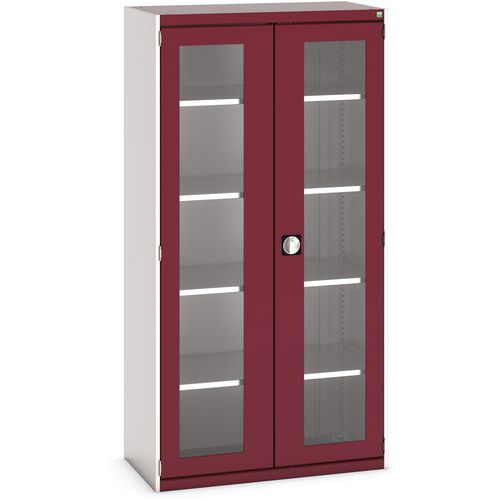 Dílenská skříň s průhlednými dveřmi Bott Cubio, 200 x 105 x 52,5 cm, 4 police, šedá-červená
