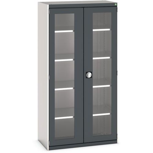 Dílenská skříň s průhlednými dveřmi Bott Cubio, 200 x 105 x 52,5 cm, 4 police, šedá-antracit