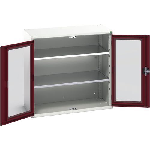 Dílenská skříň s průhlednými dveřmi Bott Verso, 100 x 105 x 55 cm, 2 police, šedá-červená
