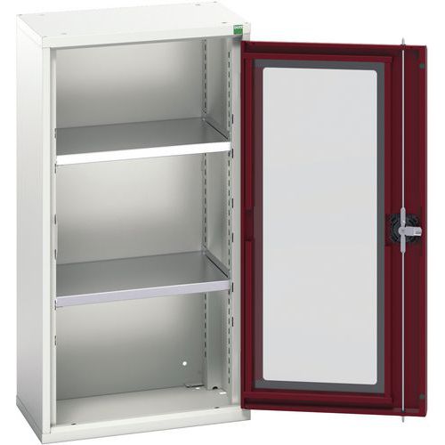 Dílenská skříň s průhlednými dveřmi Bott Verso, 100 x 52,5 x 35 cm, 2 police, šedá-červená