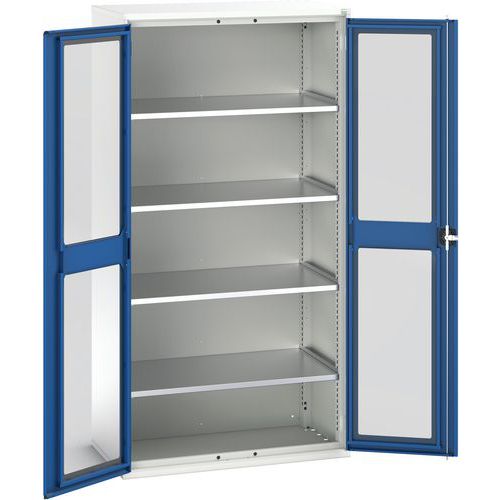 Dílenská skříň s průhlednými dveřmi Bott Verso, 200 x 105 x 55 cm, 4 police, šedá-modrá