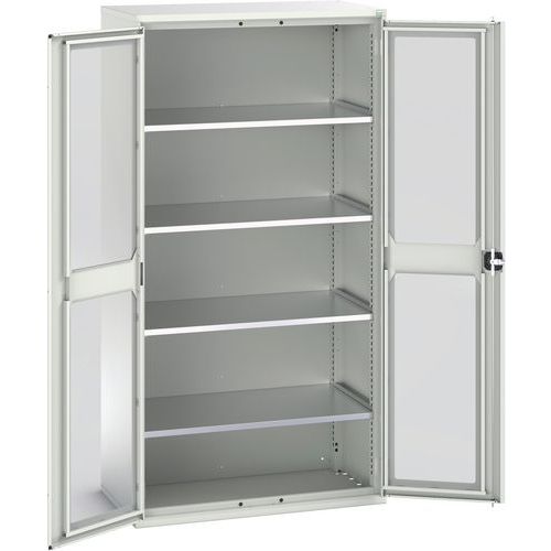Dílenská skříň s průhlednými dveřmi Bott Verso, 200 x 105 x 55 cm, 4 police, šedá-šedá