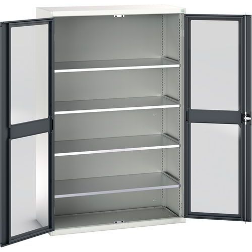 Dílenská skříň s průhlednými dveřmi Bott Verso, 200 x 130 x 55 cm, 4 police, šedá-antracit