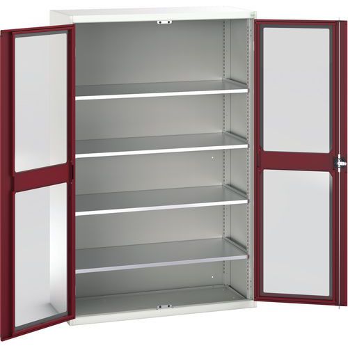 Dílenská skříň s průhlednými dveřmi Bott Verso, 200 x 130 x 55 cm, 4 police, šedá-červená