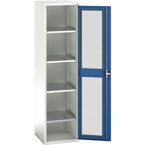 Dílenská skříň s průhlednými dveřmi Bott Verso, 200 x 52,5 x 55 cm, 4 police, šedá-modrá