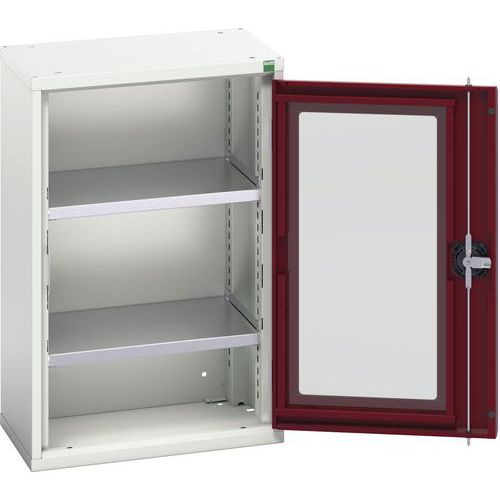 Dílenská skříň s průhlednými dveřmi Bott Verso, 80 x 52,5 x 35 cm, 2 police, šedá-červená