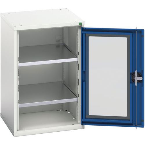 Dílenská skříň s průhlednými dveřmi Bott Verso, 80 x 52,5 x 55 cm, 2 police, šedá-modrá