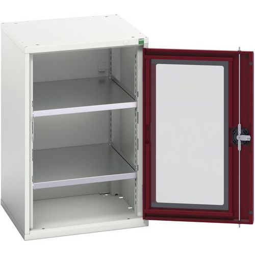 Dílenská skříň s průhlednými dveřmi Bott Verso, 80 x 52,5 x 55 cm, 2 police, šedá-červená
