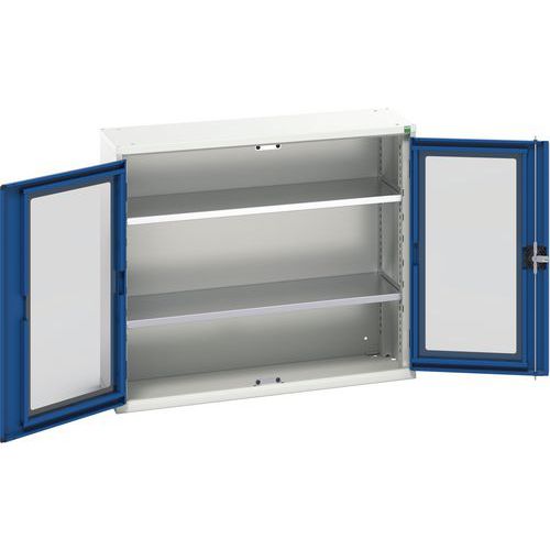 Dílenská skříň s průhlednými dveřmi Bott Verso, 90 x 105 x 35 cm, 2 police, šedá-modrá