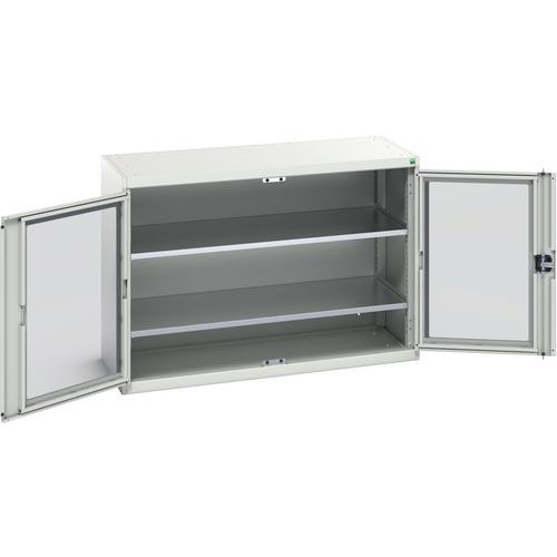 Dílenská skříň s průhlednými dveřmi Bott Verso, 90 x 130 x 55 cm, 2 police, šedá-šedá