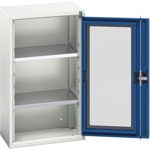 Dílenská skříň s průhlednými dveřmi Bott Verso, 90 x 52,5 x 35 cm, 2 police, šedá-modrá