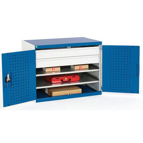 Dílenská skříň se zásuvkami Bott Cubio 160, 100 x 130 x 65 cm, 2 police, 1 zásuvka, šedá-modrá